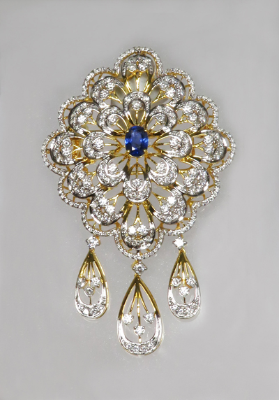 | Identification | Gold pendant brooch with natural sapphire and natural diamonds |