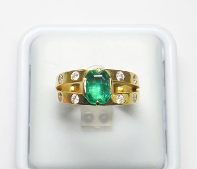 | Identification | Gold ring with natural emerald and natural diamonds |